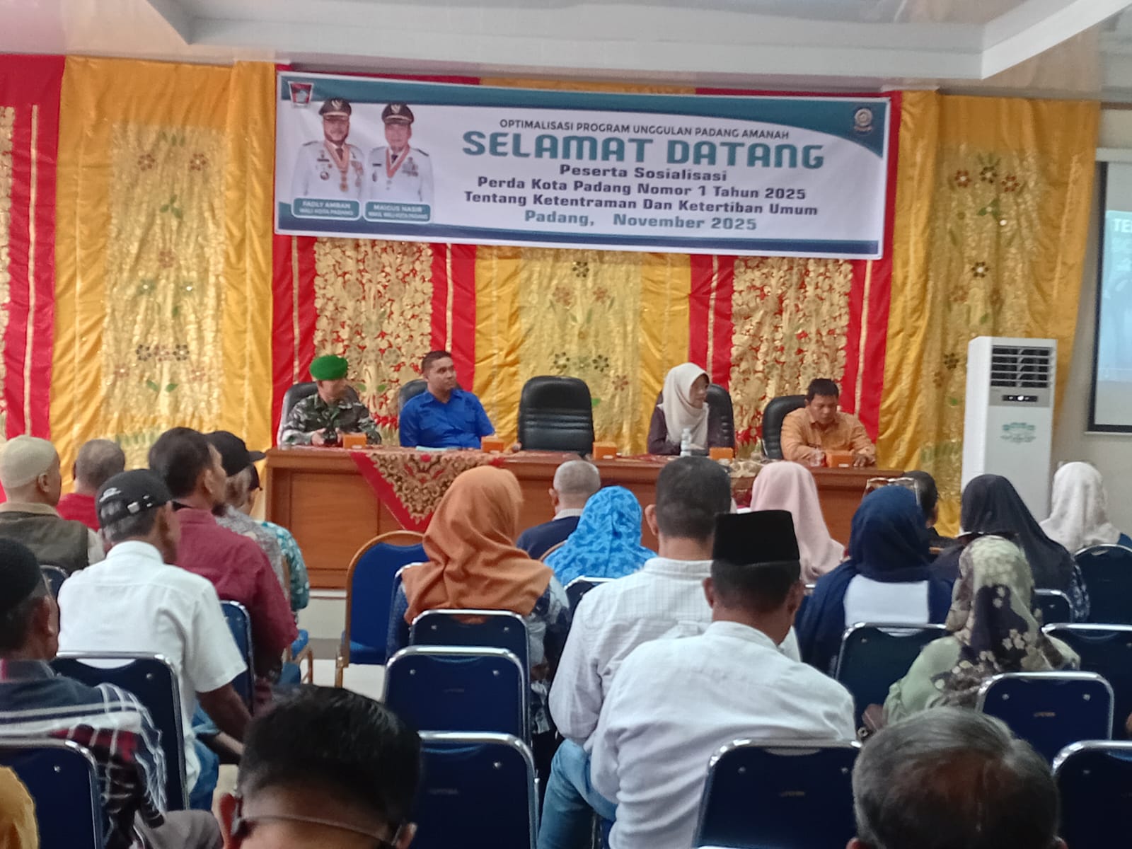 KORAMIL 01 PBU | Babinsa Ulak Karang Selatan, Pelda Usman, menghadiri dan mendampingi pelaksanaan sosialisasi Peraturan Daerah Kota Padang Nomor 1 Tahun 2025 tentang Ketentraman dan Ketertiban Umum yang digelar di Aula Kecamatan, Sabtu 15 November 2025. Kegiatan ini dihadiri para tokoh masyarakat, unsur kelurahan, dan perwakilan warga dari berbagai lingkungan.