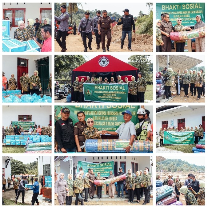 KEJATI SUMBAR | Wakil Kepala Kejaksaan Tinggi Sumatera Barat, Dr. Mukhlis, S H , M H , pada Kamis 4 Desember 2025 memimpin langsung kegiatan bakti sosial penyerahan bantuan bagi masyarakat yang terdampak bencana alam di wilayah Sumatera Barat. Kegiatan ini turut dihadiri Ketua IAD Wilayah Sumbar, Ny Ilusia Mukhlis, beserta Ibu Ibu IAD Wilayah yang hadir sebagai bentuk kepedulian sosial.
