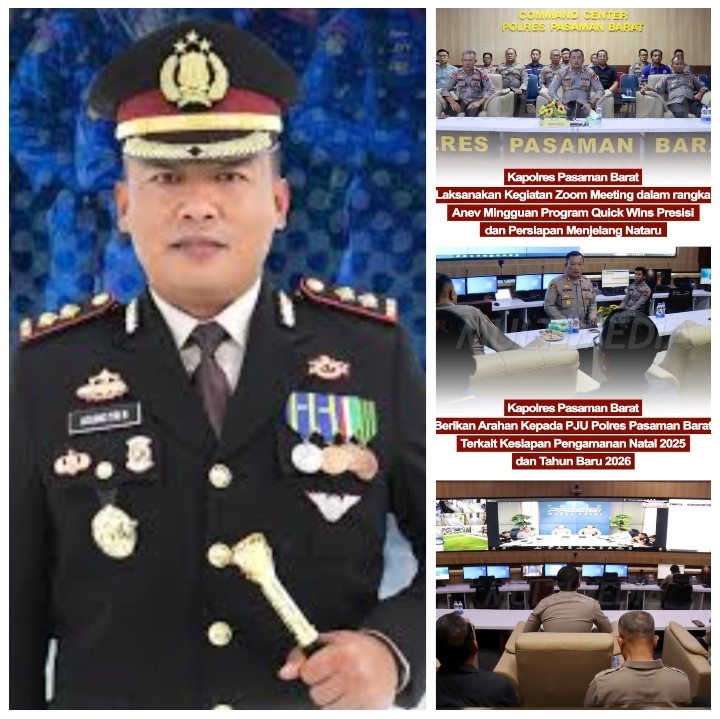 PASAMAN BARAT | Kapolres Pasaman Barat AKBP Agung Tribawanto, S.I.K., memimpin langsung Zoom Meeting Analisa dan Evaluasi (Anev) Mingguan Program Quick Wins Presisi yang digelar di Command Center Polres Pasaman Barat. Kegiatan tersebut diikuti oleh seluruh Pejabat Utama (PJU) sebagai bagian dari penguatan kinerja menjelang Natal 2025 dan Tahun Baru 2026.