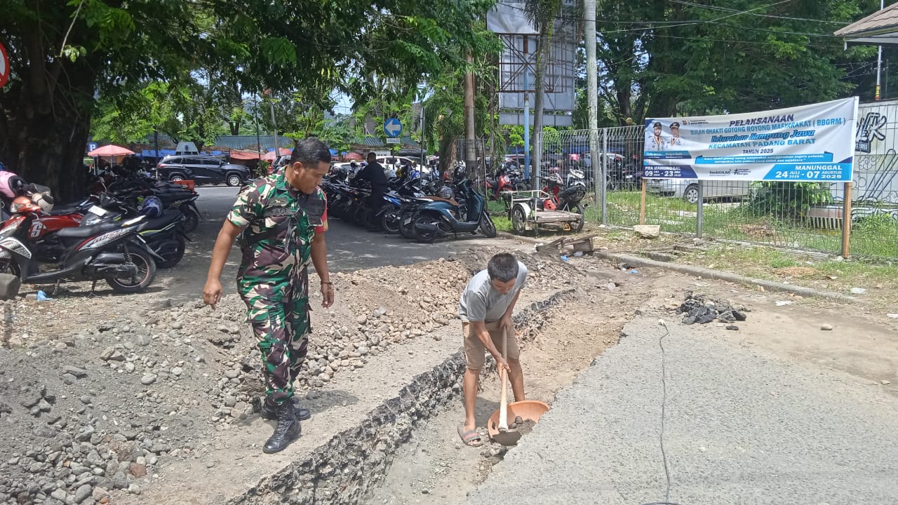 KORAMIL 01 PBU | Kepedulian TNI terhadap lingkungan dan keselamatan warga kembali ditunjukkan oleh Koramil 01/PBU Kodim 0312/Padang. Babinsa Kelurahan Kampung Jawa, Sertu Syafruddin, melaksanakan kegiatan komunikasi sosial (komsos) sekaligus monitoring perbaikan drainase yang rusak di RT 01 RW 03 Kelurahan Kampung Jawa, sebagai bentuk nyata kehadiran aparat teritorial di tengah masyarakat.
