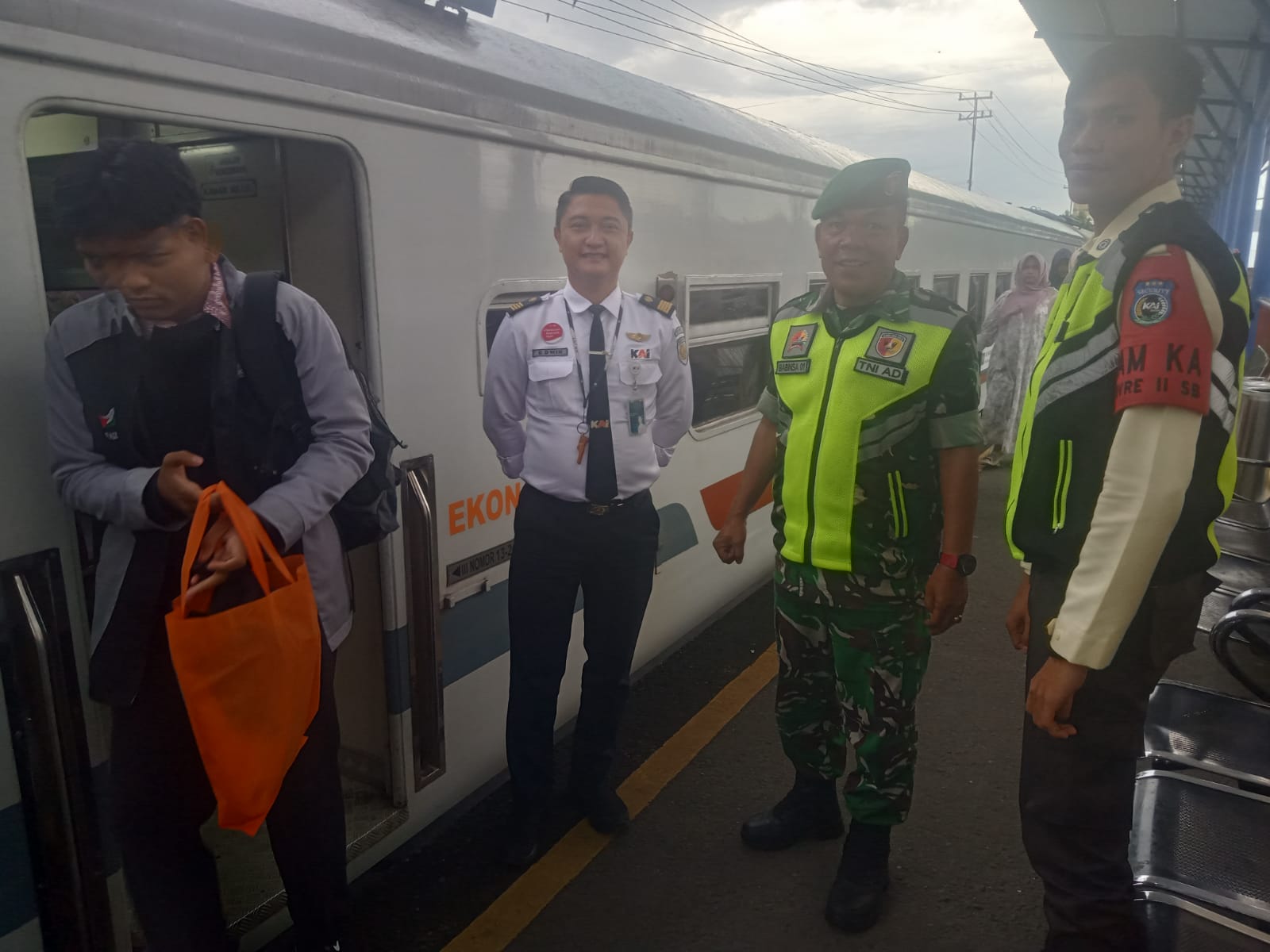 Serma Yunalizal tampak sigap menjalankan pengamanan dengan melakukan pemantauan situasi di sekitar stasiun, berkoordinasi dengan unsur terkait, serta memberikan rasa aman kepada masyarakat yang menggunakan transportasi kereta api maupun warga sekitar.