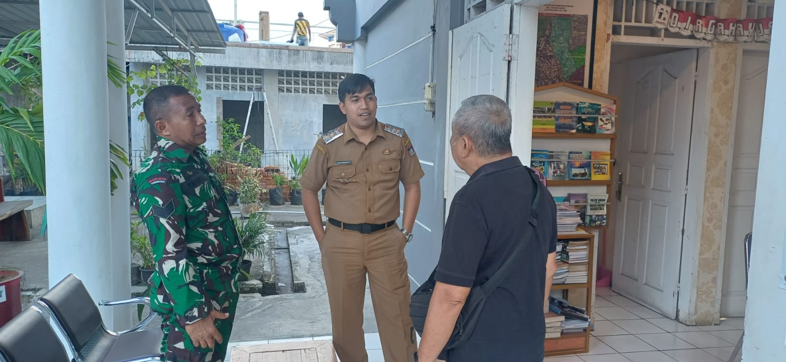 KORAMIL 01 PBU | Babinsa Koramil 01/Padang Barat Kelurahan Ujung Gurun, Serka Syafrijal, melaksanakan kegiatan komunikasi sosial (Komsos) bersama Lurah Ujung Gurun dan Ketua Koperasi, Senin, 12 Januari 2026, di wilayah Kecamatan Padang Barat.
