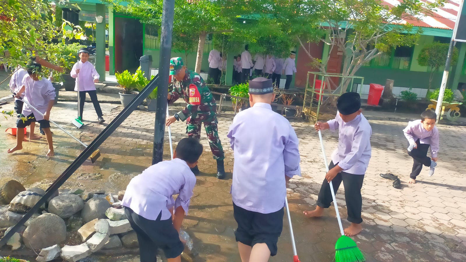 “Babinsa harus hadir dan menjadi teladan di wilayah binaannya. Kegiatan gotong royong bersama murid sekolah ini sangat penting untuk menanamkan nilai kepedulian, kebersamaan, dan cinta lingkungan sejak usia dini,” ujar Kapten Arm Junardy.