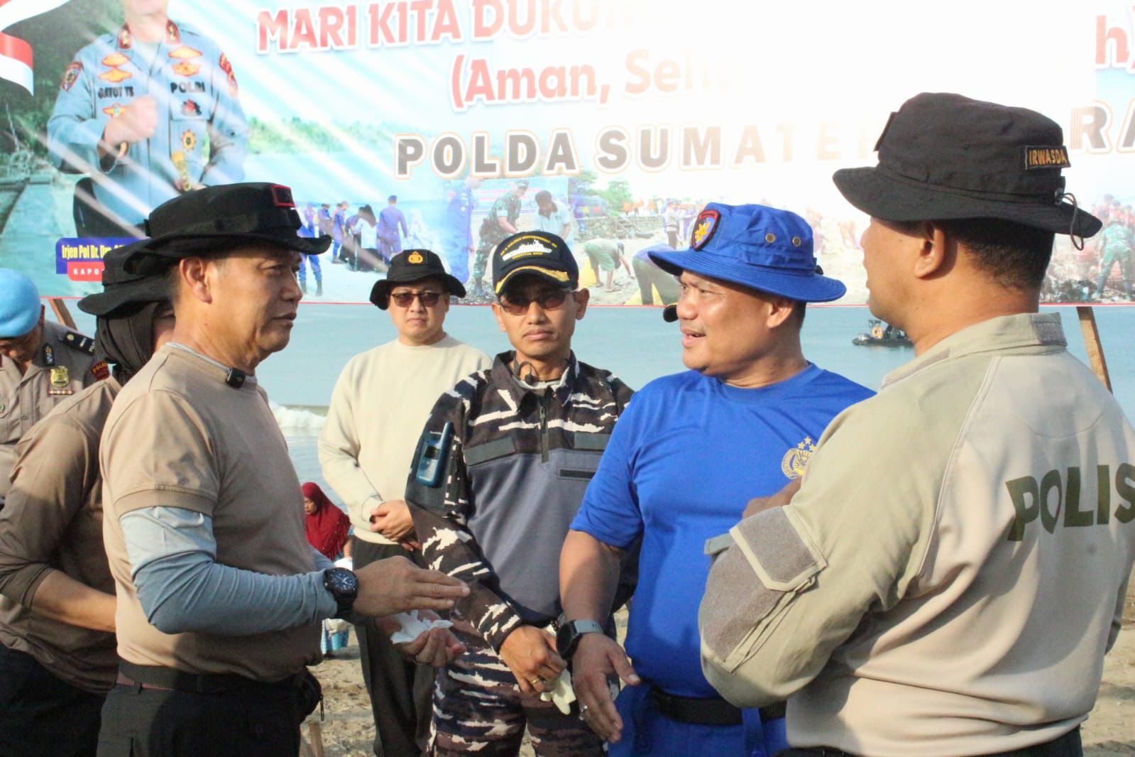 Padang | Dalam upaya menjaga kelestarian lingkungan dan meningkatkan kesadaran masyarakat akan pentingnya kebersihan, Personil Polda Sumbar menggelar aksi bersih pantai di Pantai Purus Padang, pada Selasa (10/2) Kegiatan bersih pantai ini dipimpin oleh Wakapolda Sumbar Brigjen Pol Solihin, S.I.K M.H., CSPHR.