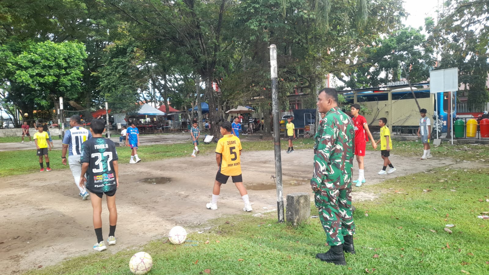 KORAMIL 01 PBU | Peran aparat teritorial tidak hanya sebatas menjaga stabilitas wilayah, namun juga hadir di tengah masyarakat untuk membina generasi muda. Hal itulah yang dilakukan Babinsa Kelurahan Purus, Sertu Hendri Patrizon, saat memberikan motivasi dan semangat kepada anak-anak dalam kegiatan latihan bola di wilayah Kecamatan Padang Barat.