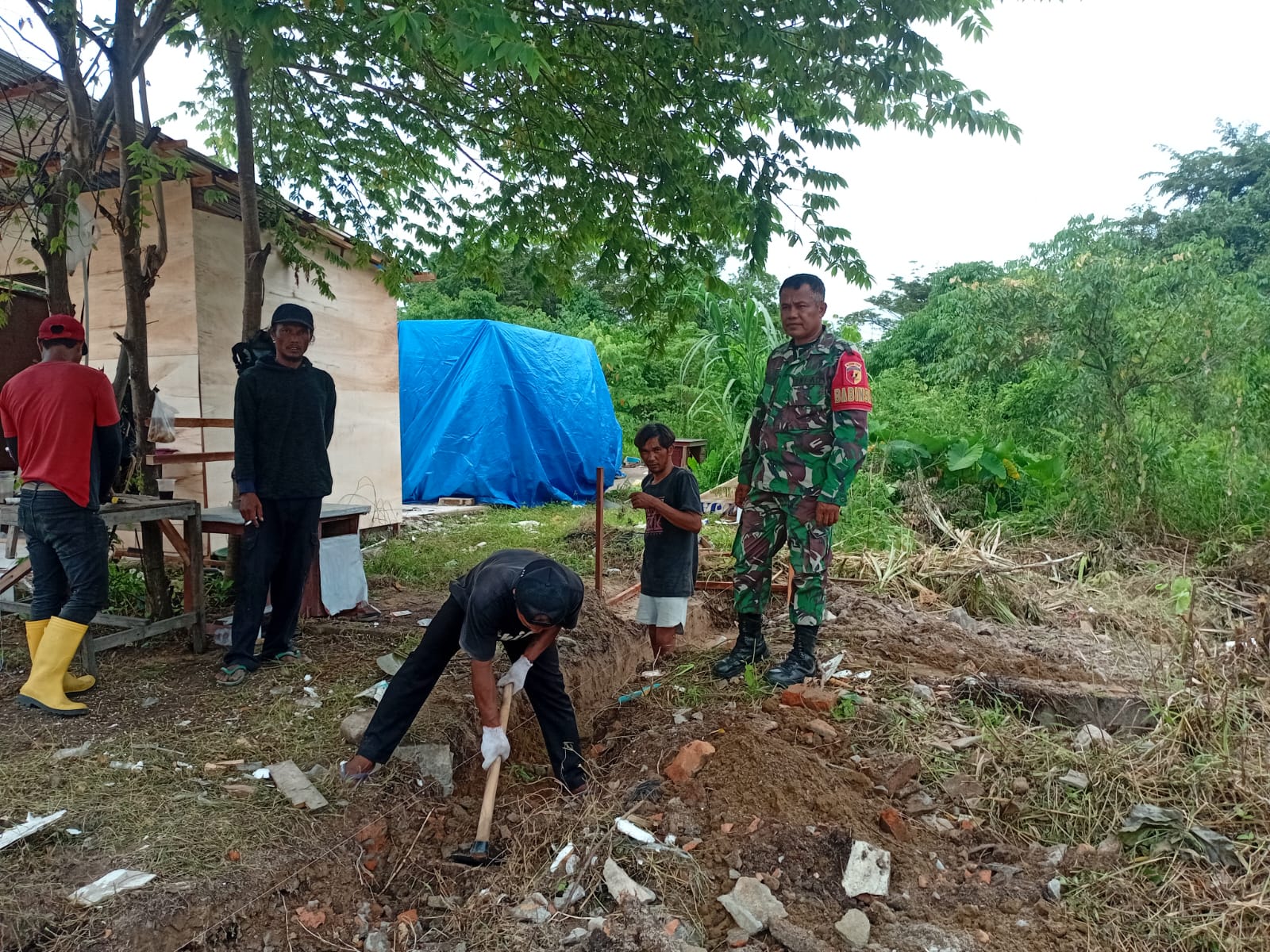 Selain melakukan pendampingan, Babinsa juga memantau aspek keamanan dan ketertiban selama proses pembangunan berlangsung agar kegiatan berjalan kondusif dan tertib di lingkungan sekitar.