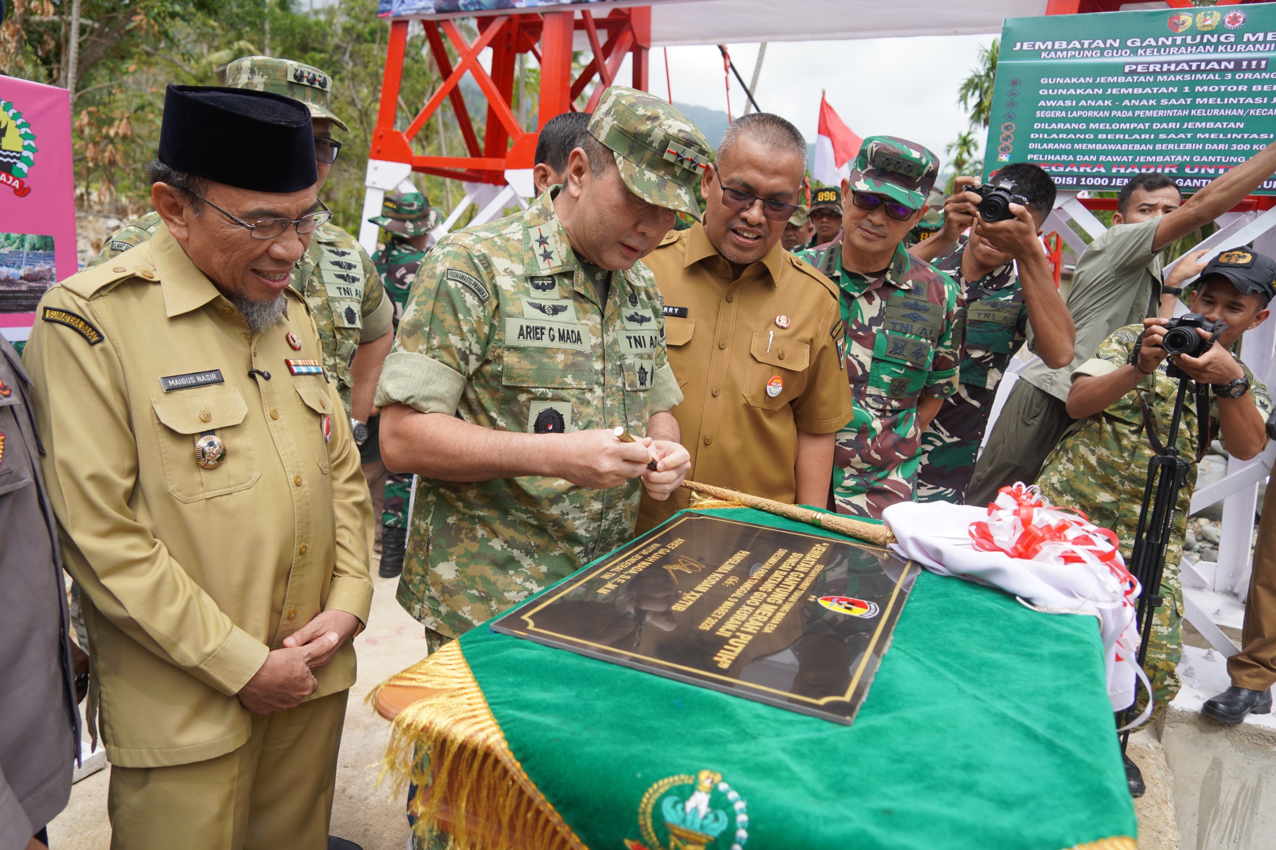 PADANG  | Jembatan Gantung Garuda Merah Putih di daerah Guo RT 01/06 kelurahan Kuranji kota Padang yang dikerjakan oleh prajurit TNI AD (Kodam XX/TIB) resmi digunakan. Peresmian dilakukan oleh Presiden RI H, Prabowo Subianto secara daring yang juga di hadiri Kasad, Jenderal TNI Maruli Simanjuntak saat melakukan peresmian secara bersamaan di wilayah Aceh pada Senin 9/3/2026.