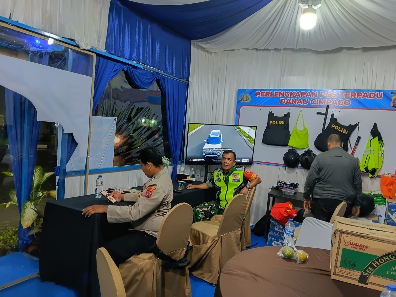 Serma Yunalizal tampak aktif berkoordinasi dengan personel gabungan yang terdiri dari TNI, Polri, Satpol PP, Dinas Perhubungan, serta tenaga kesehatan yang turut bersiaga di Pos Pam Terpadu.