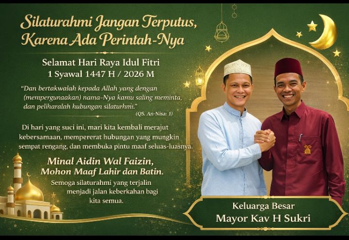 Mayor Kav Sukri menyadari, dalam realitas kehidupan, kesibukan, perbedaan pandangan, bahkan hal-hal kecil kerap menjadi pemicu renggangnya hubungan. Namun justru di situlah Idul Fitri hadir—sebagai kesempatan emas untuk menyambung kembali yang sempat terputus.
