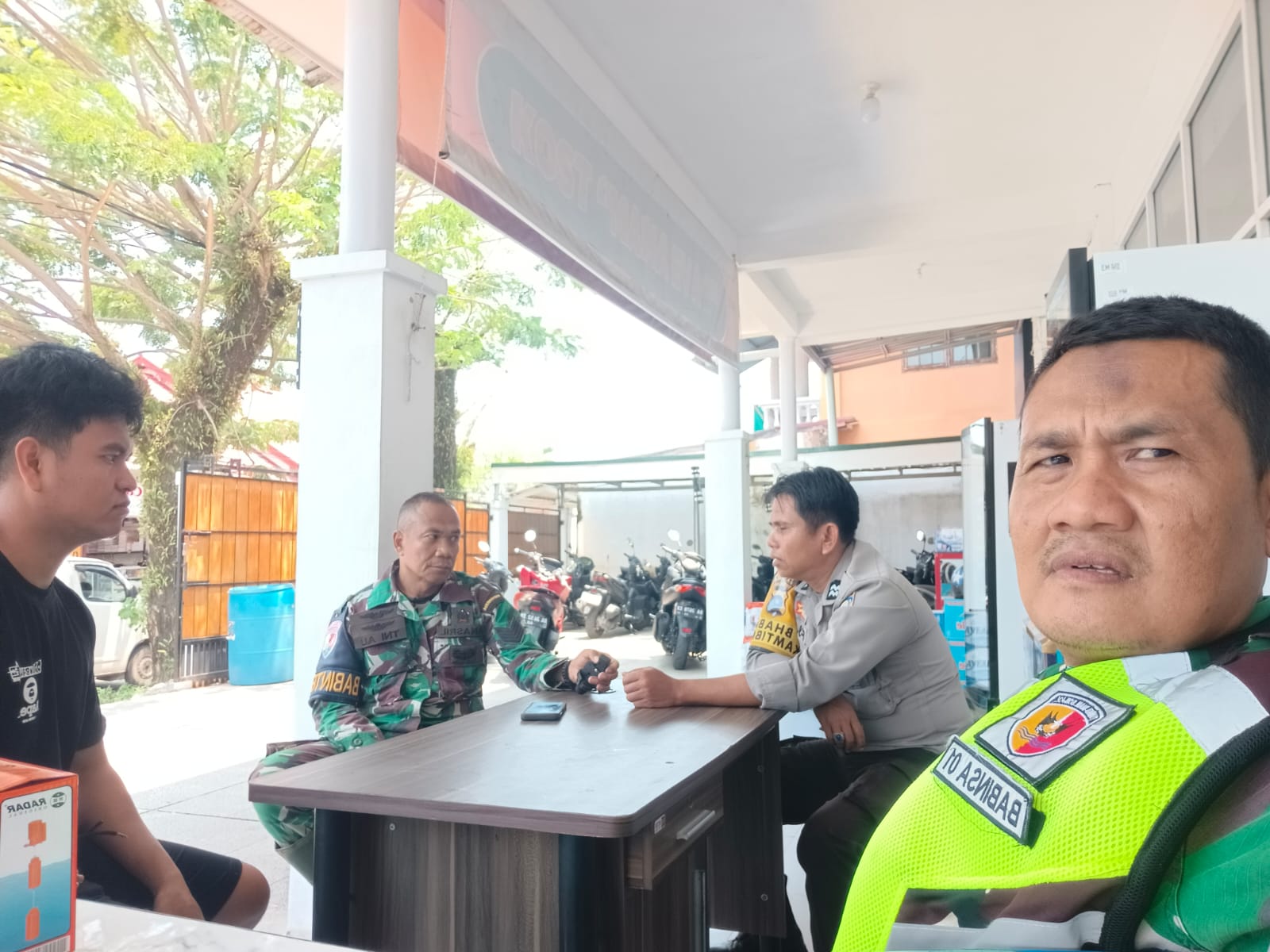 Babinsa Kelurahan Air Tawar Barat, Serka Iswadi, hadir langsung di tengah masyarakat melalui kegiatan komunikasi sosial (komsos) yang dilaksanakan bersama Bhabinkamtibmas dan Babinpotdirga (Babinter AU). Kegiatan ini menjadi bagian dari upaya sinergi tiga pilar dalam menjaga stabilitas keamanan wilayah.