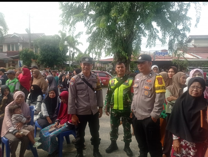 Serka Jamarin tampak aktif mengatur jalannya kegiatan, memastikan warga yang hadir dapat menerima bantuan secara teratur tanpa terjadi kerumunan berlebihan. Ia juga terus berkoordinasi dengan Bhabinkamtibmas untuk menjaga ketertiban.