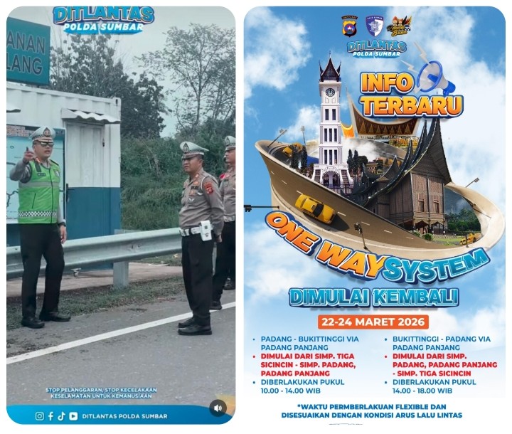 PADANG PARIAMAN | Sistem satu arah atau one way system kembali diberlakukan di jalur Padang–Bukittinggi selama tiga hari, mulai 22 hingga 24 Maret 2026. Kebijakan ini menjadi langkah strategis Direktorat Lalu Lintas Polda Sumbar dalam menghadapi lonjakan arus mudik Lebaran.