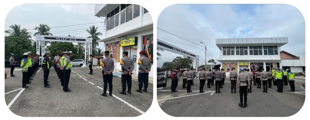 Kegiatan tersebut dilaksanakan sebagai bentuk kesiapsiagaan personel dalam menghadapi meningkatnya aktivitas masyarakat selama momentum Lebaran. Barisan anggota tampak rapi dan penuh disiplin, mencerminkan keseriusan dalam menjalankan tugas pengamanan.