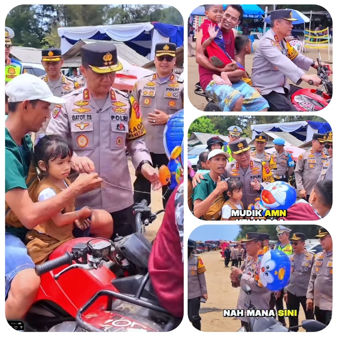 Kapolda sesekali berhenti di area yang cukup padat. Ia memperhatikan aktivitas anak-anak yang bermain di tepi laut, lalu mengingatkan orang tua agar tetap waspada terhadap ombak dan kondisi sekitar.