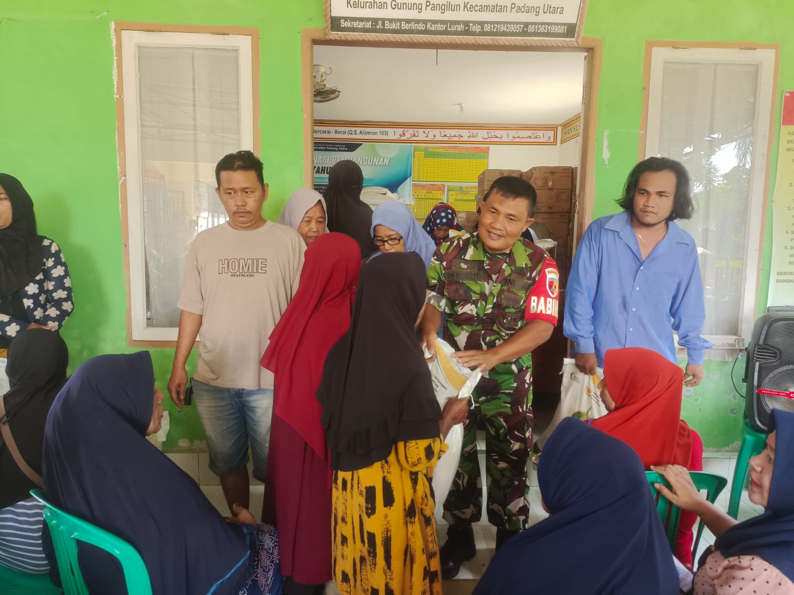 KORAMIL 01 PBU | Dalam upaya mempererat hubungan dengan masyarakat sekaligus memastikan bantuan tepat sasaran, Babinsa Kelurahan Air Tawar Barat (ATB) Serka Iswadi melaksanakan kegiatan komunikasi sosial (komsos) yang dirangkai dengan pendampingan pendistribusian bantuan pangan dari Bulog kepada warga kurang mampu, Selasa, 14 April 2026.