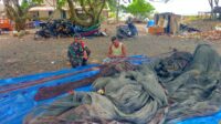 Serka Jamarin Giat Komsos Perbaikan Jaring Ikan di Ulak Karang Utara, Perkuat Semangat Nelayan Binaan