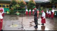 Sertu Koko Afriandi Pimpin Upacara Bendera di Tengah Hujan, Tanamkan Disiplin Siswa SD Negeri 27