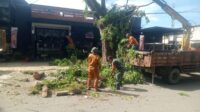 Babinsa Koramil 01 PBU Turun Langsung Atasi Pohon Tumbang Ganggu Kabel Listrik